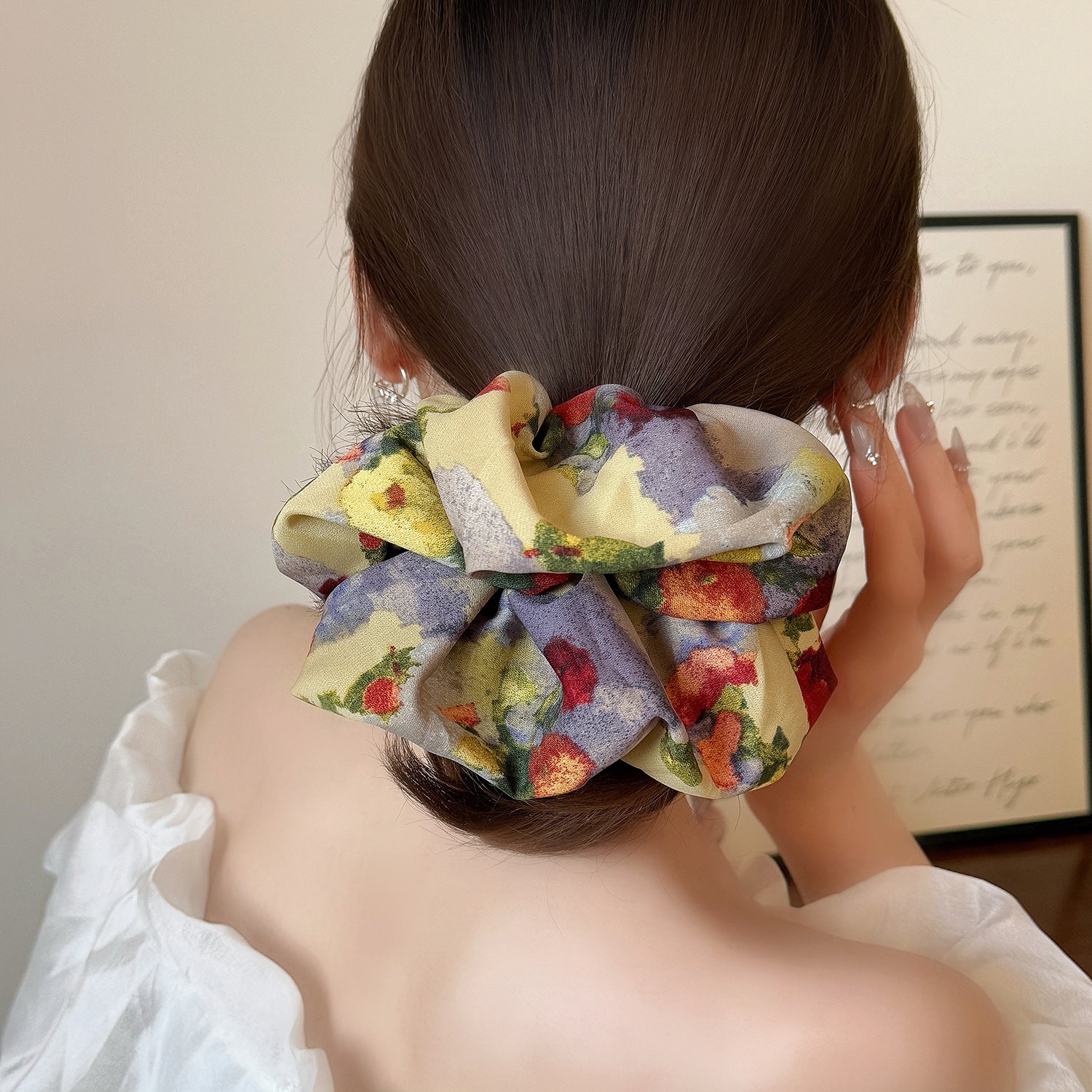 Handcrafted from soft fabric, this scrunchie collection is inspired by the dreamy textures of impressionist paintings. Featuring vibrant brushstroke florals in warm and cool tones, each piece adds a vintage, romantic charm to your everyday look.