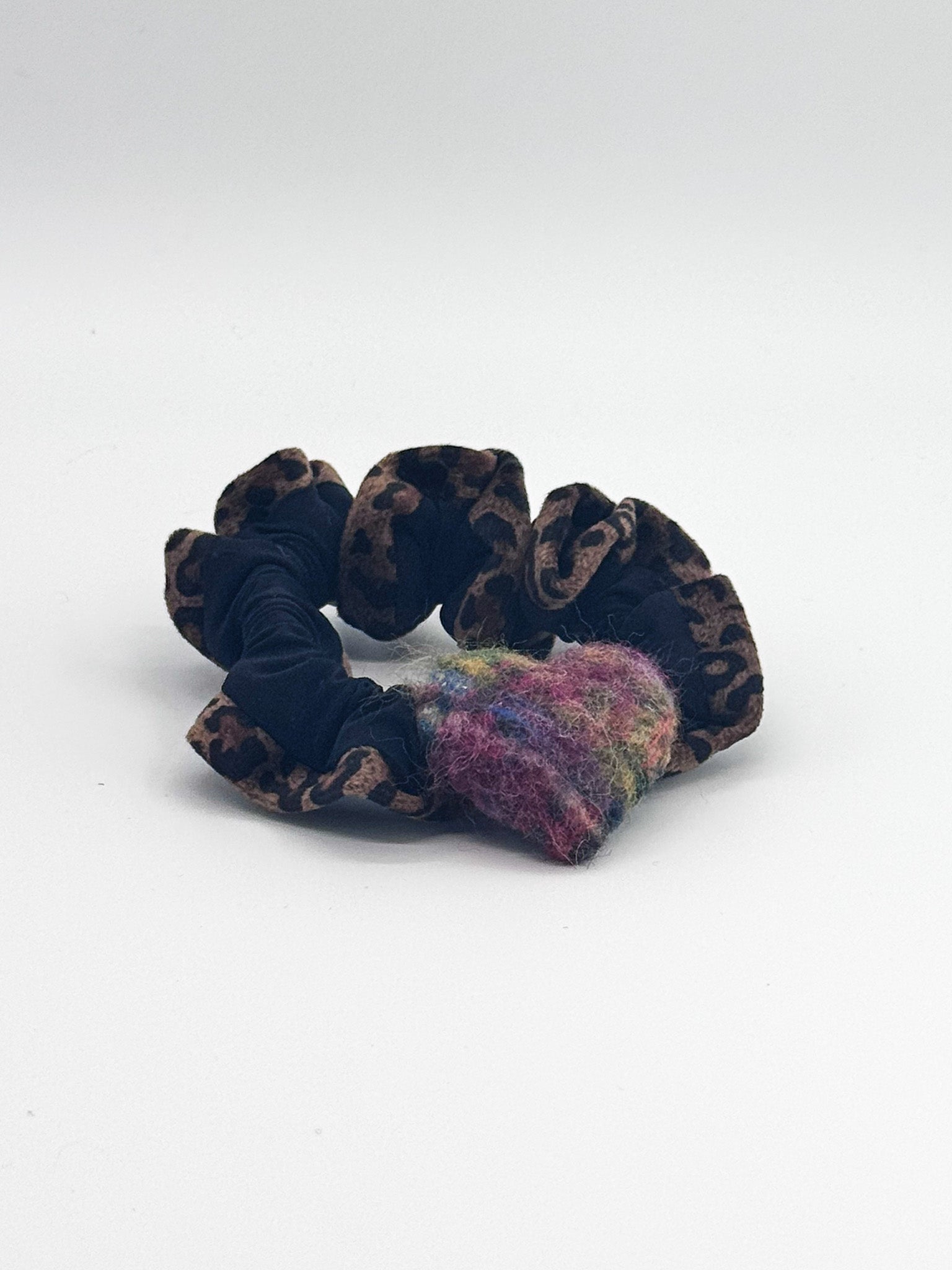Rainbow Wild Heart | Leopard Print Heart Small Scrunchie