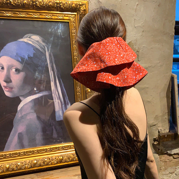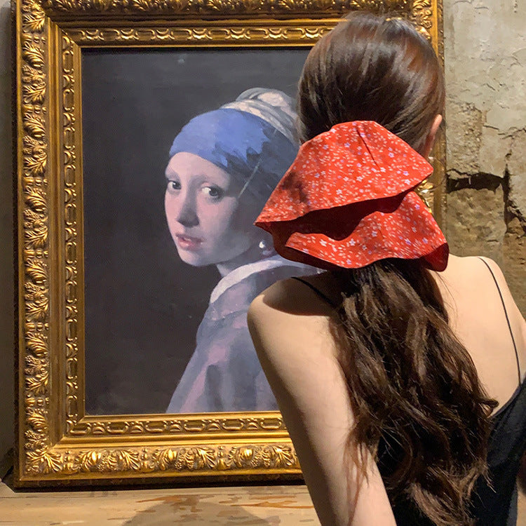Handcrafted from soft fabric, this XXL scrunchie features a chic scarf-like design with vibrant red florals, adding instant flair to your hairstyle. The oversized silhouette makes it not only a practical hair tie but also a statement accessory that turns heads wherever you go.